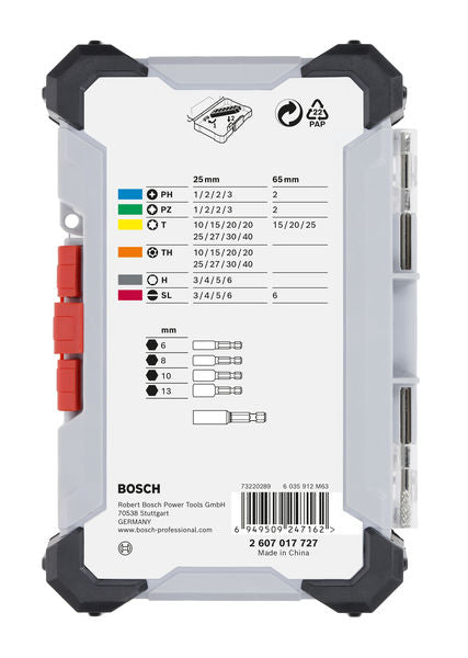 Das Extra Hard Set, 43?tlg. beinhaltet alle Standardbohrer und Steckschlüssel, die du für Schraubarbeiten benötigst. Die Schrauberbits bestehen aus wärmebehandeltem, S2-modifiziertem Stahl für Härte und Verschleißfestigkeit. Sie sind farbcodiert, damit du das richtige Bit einfacher findest. Das Set ist in einem robusten Pick and Click-Koffer untergebracht, damit du deinen eigenen Werkzeugkasten zusammenstellen und deine Bits gut organisiert und geschützt aufbewahren kannst.