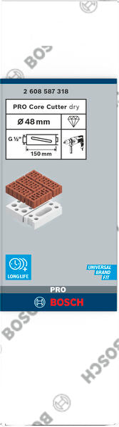 PRO Trockenbohrkrone, 48 x 150 mm, G 1/2 Zoll