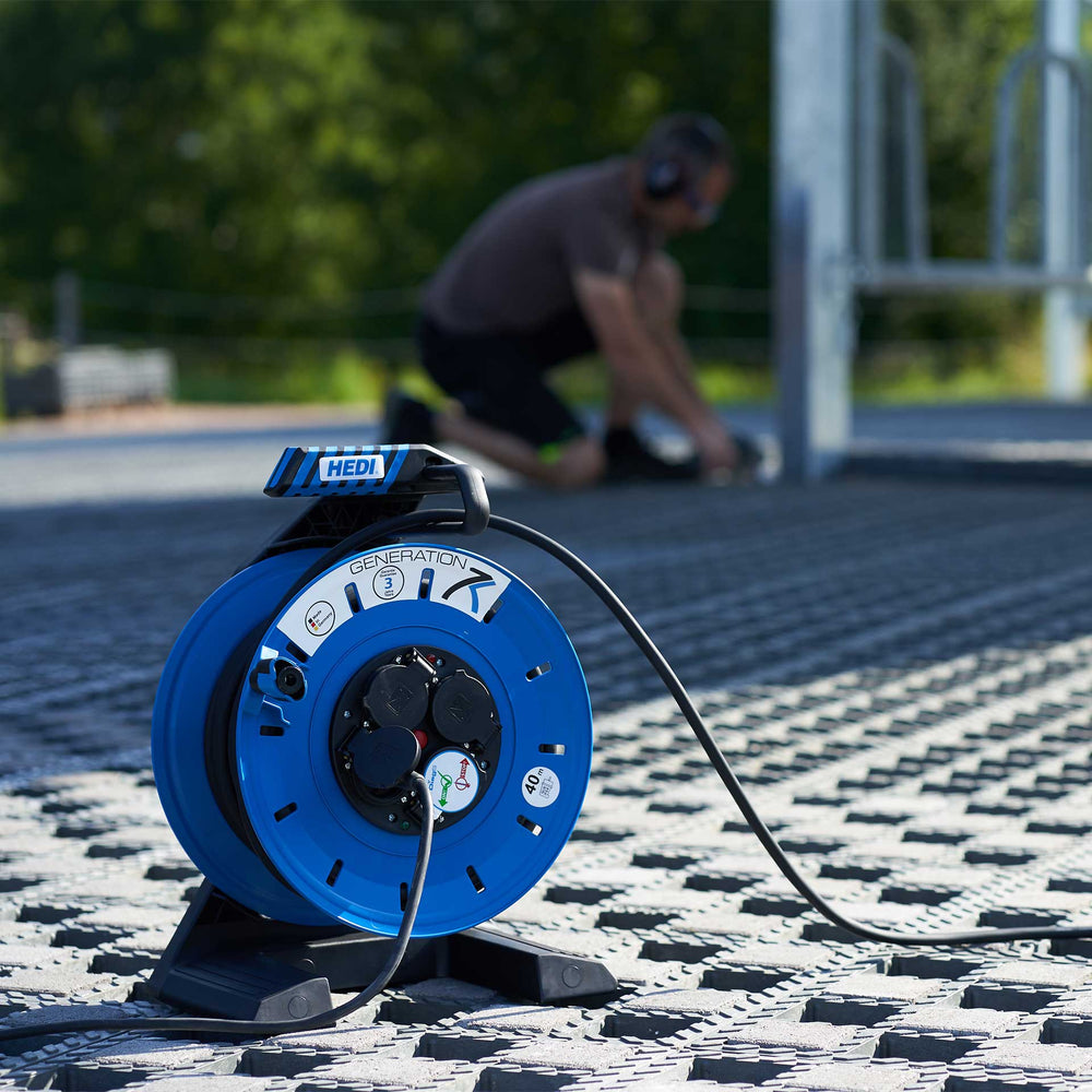 Die HEDI Generation 7 Champion 40 m: Eine durchdachte, sichere und langlebige Kabeltrommel für anspruchsvolle Einsätze im Handwerk und in der Industrie.