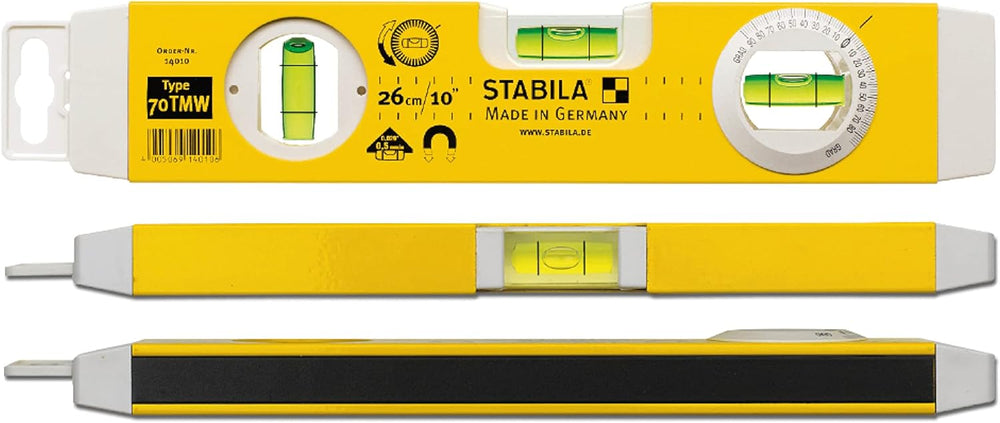 Das integrierte Magnetsystem sorgt für zuverlässige Haftung an metallischen Bauelementen und ermöglicht freihändiges Arbeiten. Ein besonderes Highlight ist die drehbare Winkel-Libelle, mit der sich Neigungen und Winkel einfach messen und übertragen lassen. Wie bei allen Wasserwaagen von STABILA werden Libelle und Messfläche im Produktionsprozess exakt zueinander ausgerichtet und dauerhaft miteinander verbunden, um eine gleichbleibend hohe Messgenauigkeit über viele Jahre sicherzustellen.