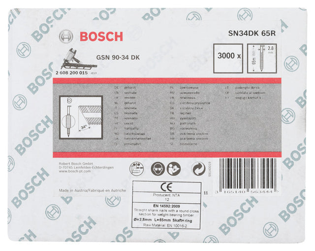 D-Kopf Streifennagel SN34DK 65R, 2,8 mm, 65 mm, blank, gerillt, 3000er-Pack ist auf Lager und wird versandt, sobald es wieder verfügbar ist