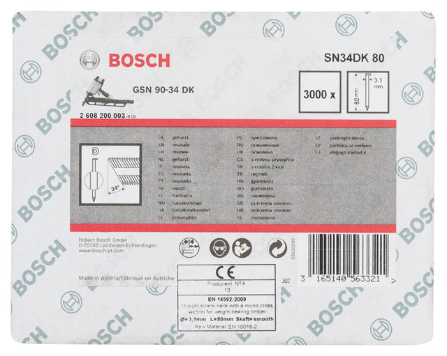 D-Kopf Streifennagel SN34DK 80, 3,1 mm, 80 mm, blank, glatt, 3000er-Pack