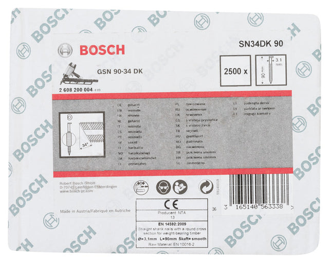 D-Kopf Streifennagel SN34DK 90, 3,1 mm, 90 mm, blank, glatt, 2500er-Pack
