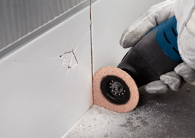 Mehrzwecknutzung in Fliesen! Erreicht mit der Spitze jede Ecke Das Entfernen einer beschädigten Fliese, ohne die gesamte Wand neu gestalten zu müssen, ist einer der großen Vorteile der Starlock-Multifunktionswerkzeugs – und mit dem EXPERT AVZ 70 RT4 3 max ist es noch einfacher. Mit diesem einen genialen Blatt kannst du alten Fugenmörtel enfernen und dabei selbst schwer zugängliche Ecken erreichen. Nach dem Enfernen der Fliese kann der Fliesenkleber bis in die Ecken abgeschliffen werden. Dies ist das Blatt für oszillierende Multifunktionswerkzeuge, das für Fliesenarbeiten benötigt wird: ein einfaches Design, das deine Arbeit erleichtert und maximale Effizienz gewährleistet. Mit der Bosch EXPERT AVZ 70 RT4 3 max hast du immer das richtige Starlock-Zubehör zur Hand. Spare Zeit und Geld mit einem Multifunktionszubehör