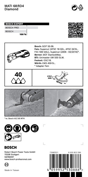 Hohe Lebensdauer in Fugenmörtel und weichen Fliesen! Spitzes Segmentsägeblatt für präzise Arbeiten bis in Ecken Das Entfernen der Fugenmasse zwischen den Fliesen ist eine Aufgabe, die Bad- und Kücheninstallateure regelmäßig durchführen müssen. Multifunktionswerkzeuge sind dafür ideal geeignet, aber manchmal ist es schwierig, in die Ecken oder um Armaturen herum zu gelangen. Mit dem EXPERT Corner Blade Blatt ist dies kein Problem. Es bietet nicht nur eine lange Lebensdauer und schnelle Entfernung des Mörtels, sondern erreicht auch problemlos Ecken. Das Bosch EXPERT Corner Blade für Multifunktionswerkzeuge ist das perfekte Zubehör für Fliesenleger und Bad- oder Kücheninstallateure. Aufgrund seiner extrem langen Lebensdauer und Vielseitigkeit sollte es in deinem Werkzeugkasten ganz oben liegen. Außergewöhnlich robuste Schneidekante mit Bosch Diamond Technology