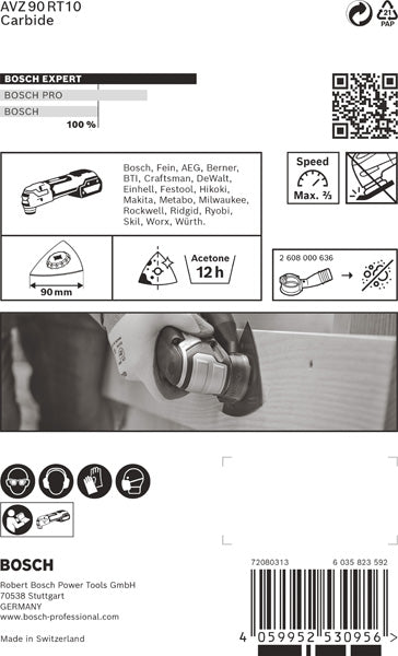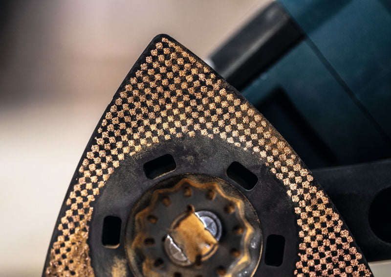 Hohe Lebensdauer beim Schleifen von verschiedensten Materialien! Die Delta-Form ermöglicht das Schleifen von Ecken und Kanten Kleine, aber harte Schleifarbeiten zum Entfernen von altem Material und zum Vorbereiten von Oberflächen sind mit herkömmlichen Schleifmaschinen oder von Hand fast unmöglich zu erledigen. Selbst wenn du die Oberfläche erreichen kannst, reißt das Schleifpapier ein. Mit der EXPERT Sanding Plate kannst du jedoch mit deinem oszillierenden Multifunktionswerkzeug Ecken erreichen und schwierige Materialien schleifen. Die groben, offenen Körner des RT2 (Körnung 20) eignen sich am besten zum Entfernen von Mörtel hinter Fliesen, von Teppichkleber oder für die Grobbearbeitung von Holz. Der RT4 (Körnung 40) eignet sich am besten zum Entfernen von dickem Lack, er kann aber auch mit Mörtel und Kleber umgehen. Der RT6 (Körnung 60) ist der Lackspezialist, während der RT10 (Körnung 100) ideal zum Schleifen und Vorbereiten sauberer Holzoberflächen geeignet ist. Überragende Lebensdauer dank Bosch Carbide Technology